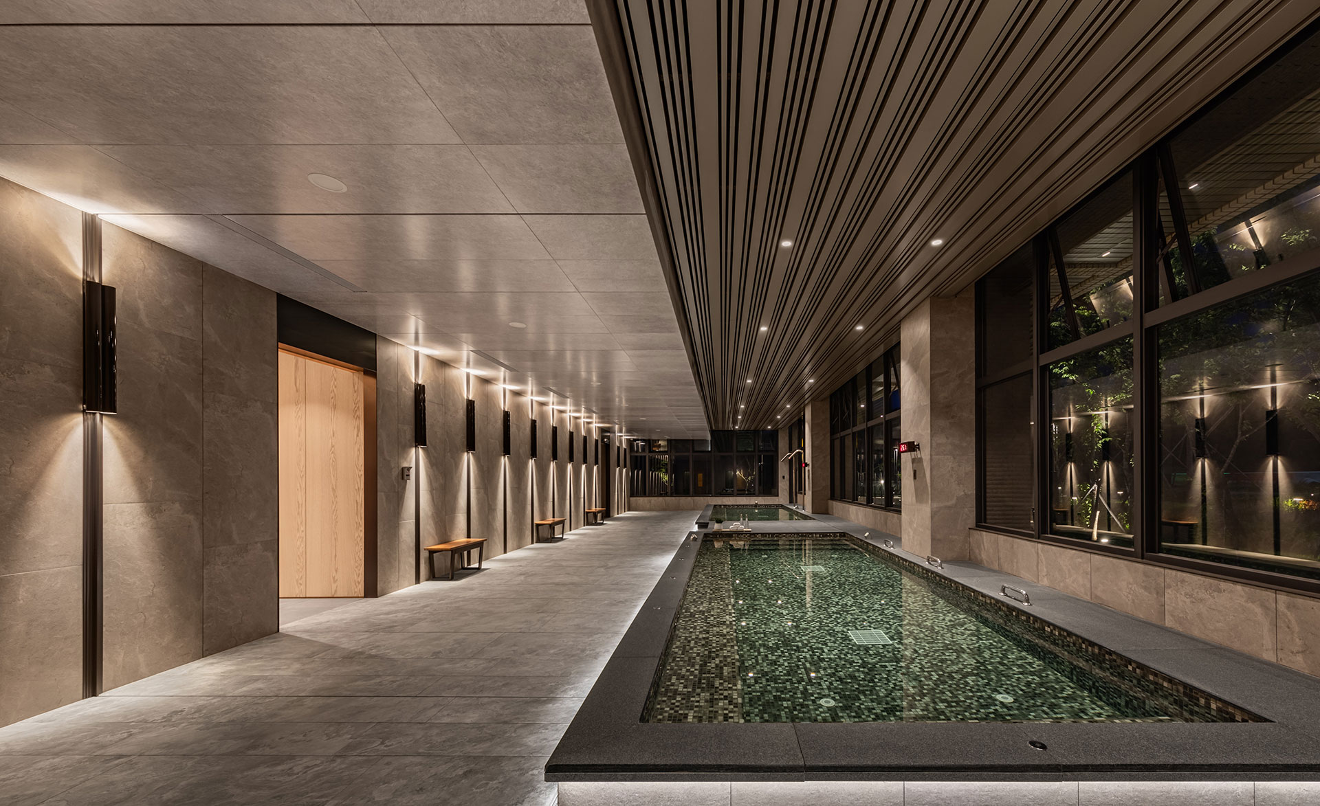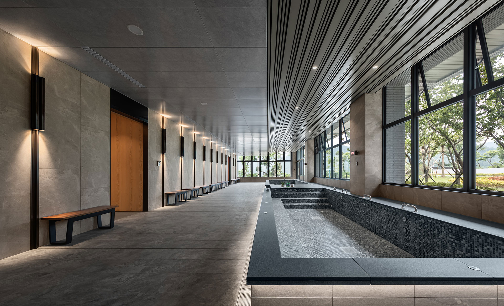 公設設計的部分,業主期待塑造一休閒景觀宅的度假氛圍,大面積的配置各項公設配套設施,期待入住於此的住戶能享受窗外那片美麗的風景之外,亦能在享受公設設施的過程中,感受放慢生活步調的美好.